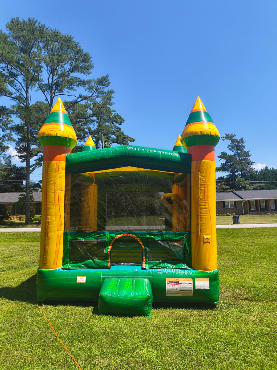 Looking to make your child’s party or community gathering unforgettable? The "Jungle Jump" Fun House is the perfect centerpiece for fun, laughter, and active play! Designed with vibrant orange, green, and yellow jungle colors, this castle-style inflatable creates a lively atmosphere that instantly energizes any crowd. With our bounce house rental "Jungle Jump Fun House", you can easily deliver a wild adventure right to your doorstep!
