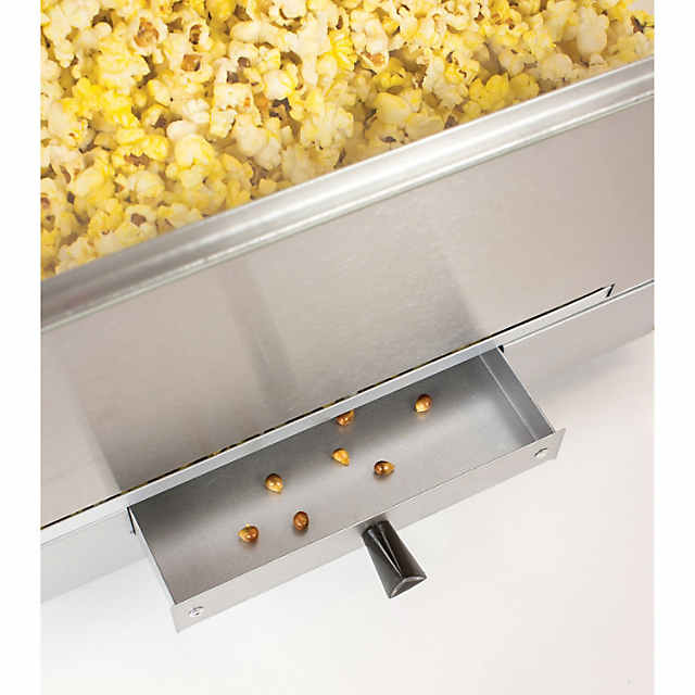 Easy to Use: Turn the machine "ON" by flipping the switch on the top of the machine. Allow the machine to run 3-5 minutes to heat up the Kettle pot; then turn the machine "OFF" while pouring the popcorn packs into the kettle pot (approximately 3 packs at a time); turn the machine "ON" & CLOSE THE DOOR and watch the magic happen. As the popcorn pops it will spill over out of the kettle. Once the popping has stop, TURN THE MACHINE OFF, tilt the kettle pot using the RED KNOB to remove the remaining popped kettles. ENJOY!