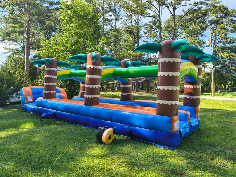 We're proud to offer the best water slide rentals in Rockdale Counties and surrounding areas. Our reliable and professional service ensures that your Tropic Dual Lane Slip n Slide arrives on time and is set up safely, ready for hours of fun.