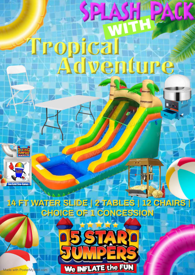 - Choice of our " Tropical Adventure" Waterslide or "Tiki Tropic" Slip n Slide